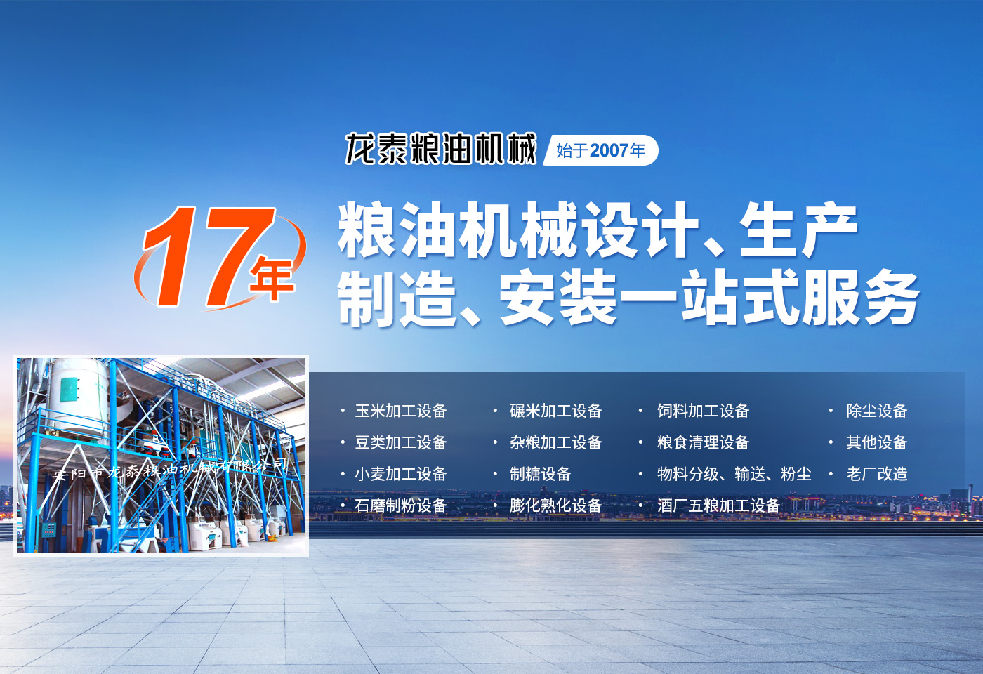 安陽市龍泰糧油機械有限公司是一個集糧油機械設計、生產制作、安裝于一體的設備制造商。公司坐落于農業生產基地河南省安陽市。多年來,公司與科研機構建立了廣泛的技術協作關系,精心致力于糧食加工設備的技術創新與應用,產品涵蓋整套碾米機械、小麥加工設備、玉米加工設備、雜糧加工設備,飼料加工及油脂設備等多個領域。可承接全套的交鑰匙工程,提供從資金預算,整體規劃,土建設計,設備制造、安裝、培訓,售后保障等一站式服務。  我公司擁有獨立自主進出口權及產品原產地注冊證書。產品除國內市場外,多次出口到,亞洲,非洲,南美洲、東歐等多個國家及地區。為國內外多家企業提供了工藝先進,技術過硬,節能的糧油設備,深得國內外客戶的一致好評。  公司以“質量就是生命”為宗旨,根據客戶不同需求,采用合理的技術方案,為客戶量身打造投資建廠方略,爭取實現高收益。公司生產過程嚴格按照合同和圖紙設計要求,生產符合設計標準、檢測標準、質量優良的產品供給客戶,并提供安裝、調試、培訓,保修期免費維修,終身免費咨詢等服務,確保設備在長期使用中穩定運行。  龍泰-愿與您一起攜手共創輝煌!